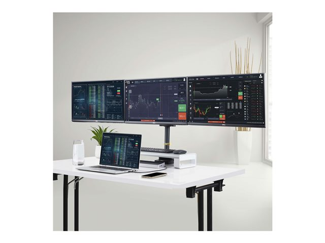 Monteringssett - justerbar arm - for 3 LCD-skjermer - plastikk, aluminium, stål - svart - skjermstørrelse: inntil 27" - skrivebordsmonterbar